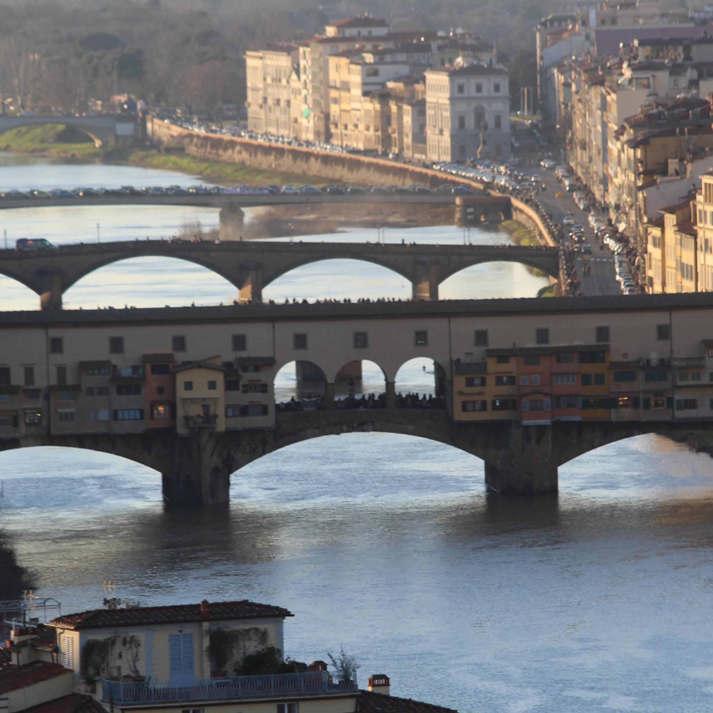 • Cross Ponte Santa Trinita, a Michelangelo-designed bridge with graceful arches, rebuilt after wartime destruction.