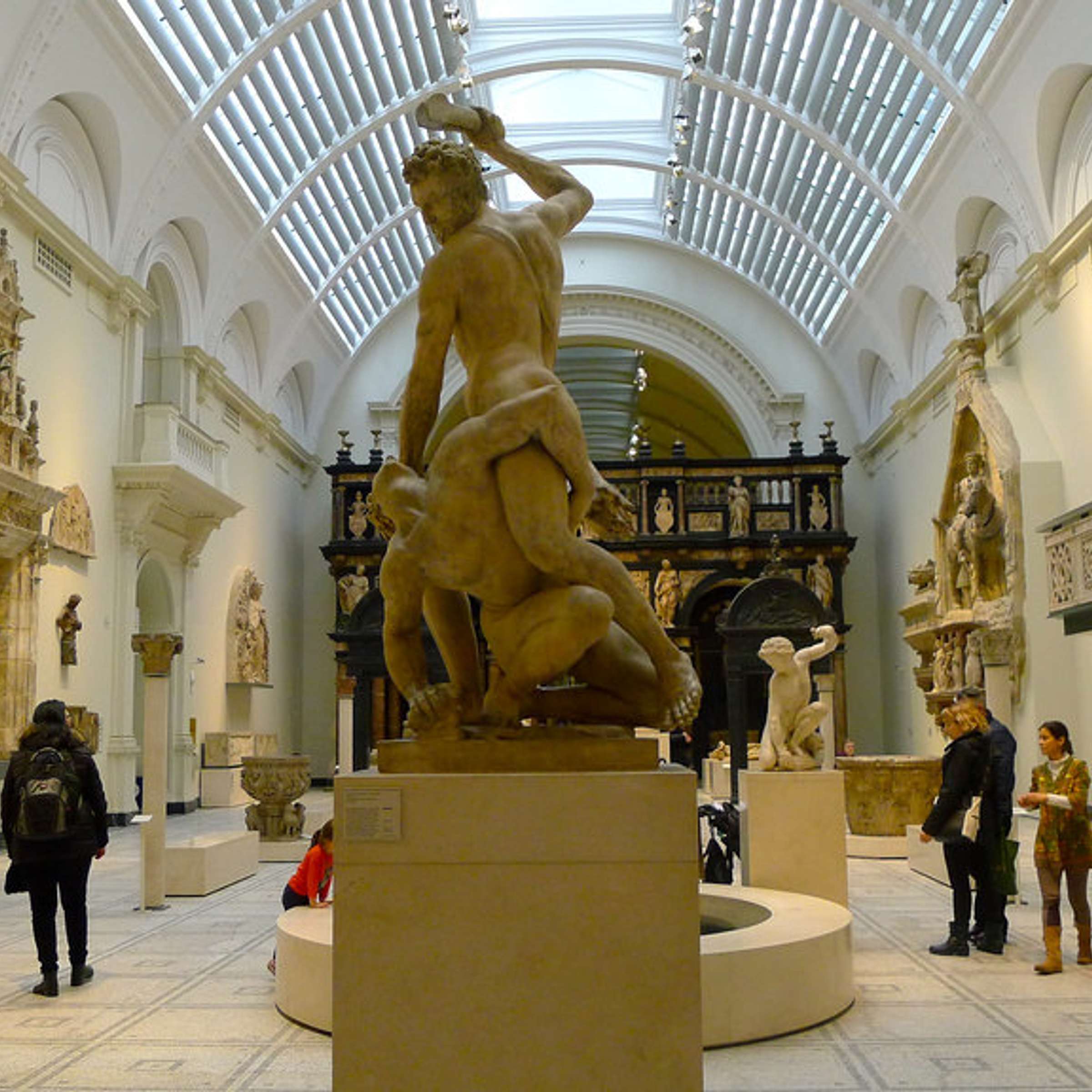 After receiving a brief overview of the museum's history outside the building, our V&A tour will continue inside the museum with a visit to the famous Raphael Cartoons (1515-16), which were created by Raphael as preparatory drawings for tapestries intended to hang in the Sistine Chapel, but which today are considered works of art in their own right. Raphael's drawings depict scenes from the lives of St. Peter and St. Paul; we will analyze each in some depth with a discussion of the history of the cartoons, the Renaissance ideals in art, and the relationship between painting and tapestry weaving. We will continue by discussing the history of art and sculpture in the sculpture galleries with works by the Baroque sculptor Bernini, the neoclassical artist Canova, and the late-nineteenth-century sculptor Rodin before moving on to the Cast Courts, which contain casts of artworks and objects from around Europe. The collection includes casts of Michelangelo's sixteenth-century 'David', the first-century Trajan's Column, and the spectacular sixteenth-century tomb of St. Sebaldus. Here, we will discuss the Victorian interest in collecting casts.