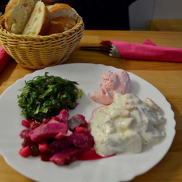 We may stop at a Franconian stall to taste test such typical foods from this region of Germany as liver sausage, white radish, and smoked salami; alternatively, we could pause our German Food Tour at Fisch Witte to try some renowned Bismarck's herring rolls. We may move to a nearby butcher to see Schweinshaxe (pork knuckles) roasting as our guide describes popular traditions and dishes in Bavaria, such as Wiener Schnitzel and Sauerbraten. We'll walk to another location, pointing out many traditional restaurants and venues along the way until we reach Dallmayr, an indoor food market housing some of the best food stalls in the city, including a new crop of global goods to feed your heart's content. Here, we might tuck into another snack such as a Leberkässemmel, akin to bologna sausage, or have a look at this season's trends at various stalls in the delicatessen as our guide talks through Munich´s evolving yet traditional food scene.