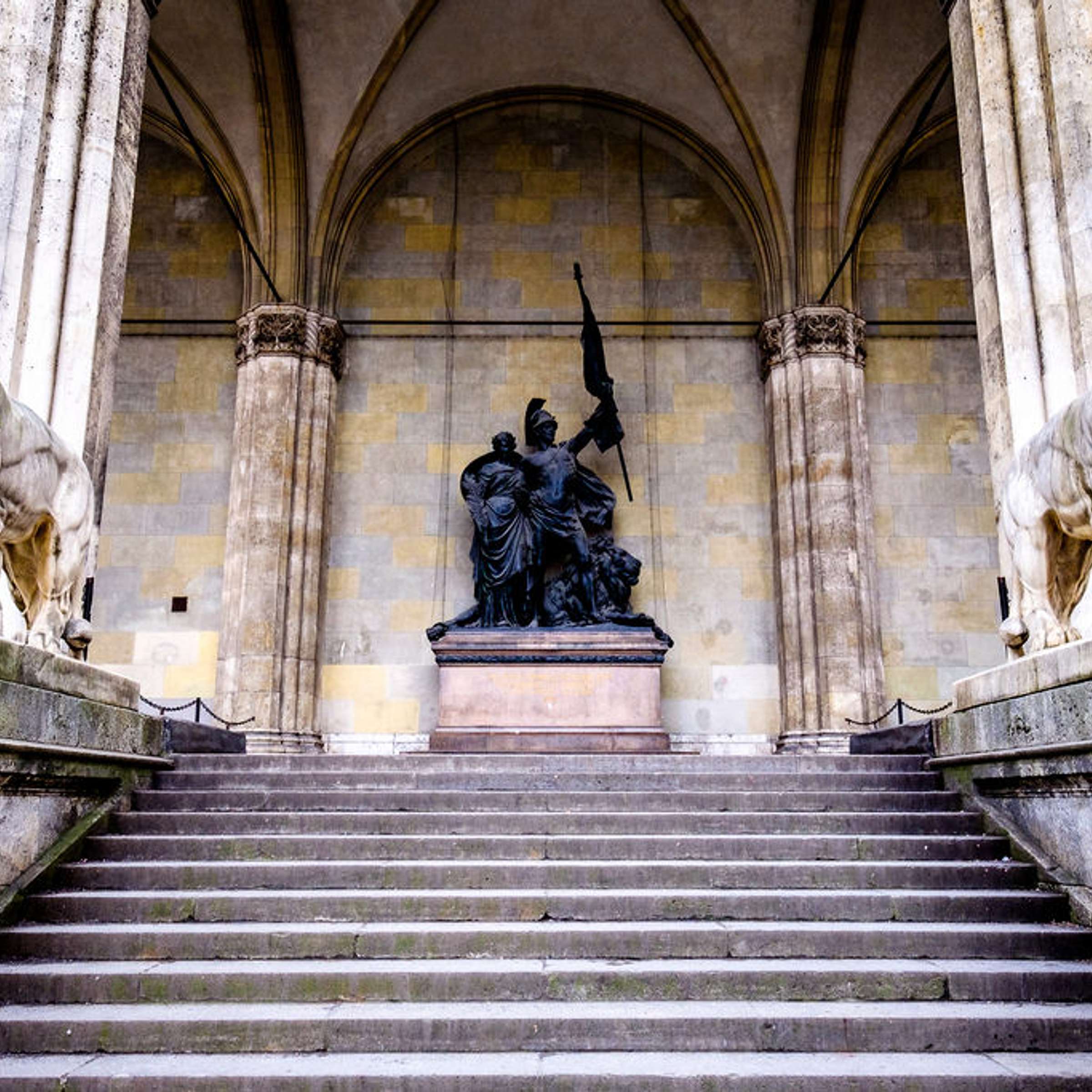 We begin our WW2 Nazi Munich Tour at Marienplatz, from which we can introduce the themes of our tour and dive off in the direction our guide chooses. We might go to the former Sterneckerbräu, a Munich brewery which gained fame as the place where the first branch of the German Workers’ Party (DAP) met, before becoming the Nazi Party (NSDAP). We'll visit today’s Hofbräuhaus, another brewery which helped propel Hitler to the center political stage and where he gave his first speech in 1920. We’ll continue on our WW2 Nazi Munich Tour to Feldherrnhalle and Odeonsplatz as we discuss how this location took on new significance in the run-up to the Nazi power takeover. A former memorial to the Bavarian army, Feldherrnhalle was the site of the failed Beer Hall Putsch of 1923, and for future parades, rallies, and Nazi meetings. Here, we could discuss the evolution of this important space during the Nazi rule and the visible damage that can be seen today from the fallout of the constant bombings throughout WW2.