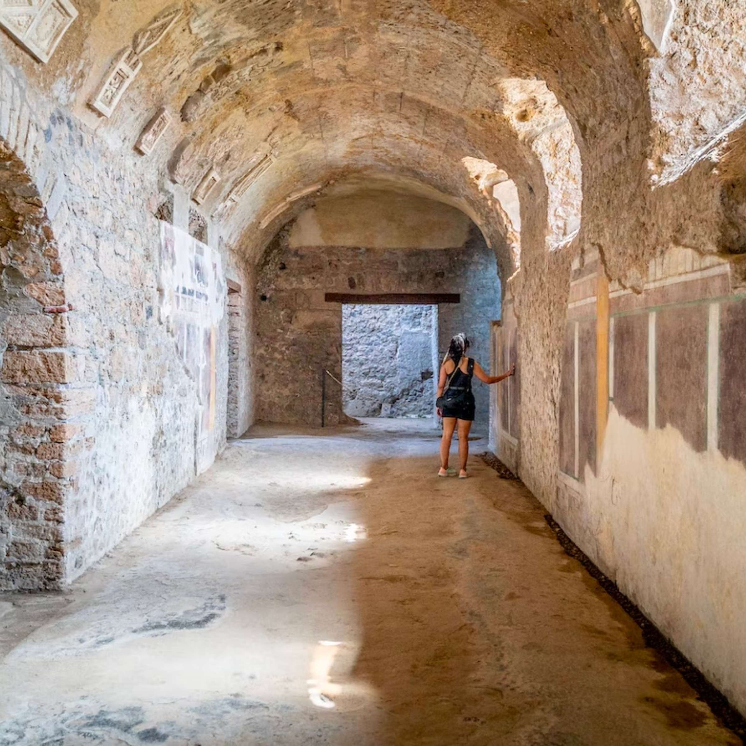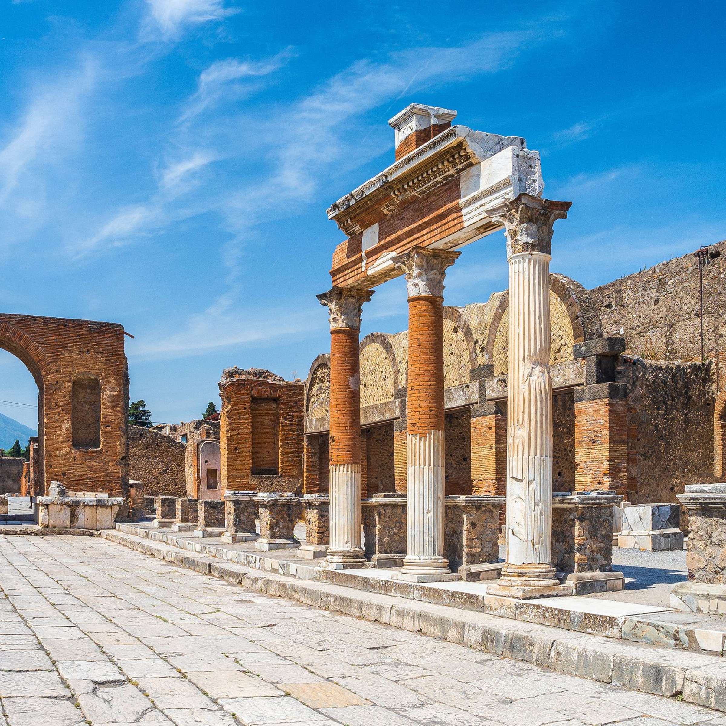 Upon being picked up at your Naples accommodation, you'll join your expert and private driver to head to your first stop, the Pompeii archeological site. You’ll move along the ancient cobble-stoned roads while admiring the private homes, amphitheaters, temples, civic buildings, and public baths that help showcase everyday activities in the city. We’ll learn about the education of children, the roles of women, and the institution of slavery to understand the daily lives of the Romans.