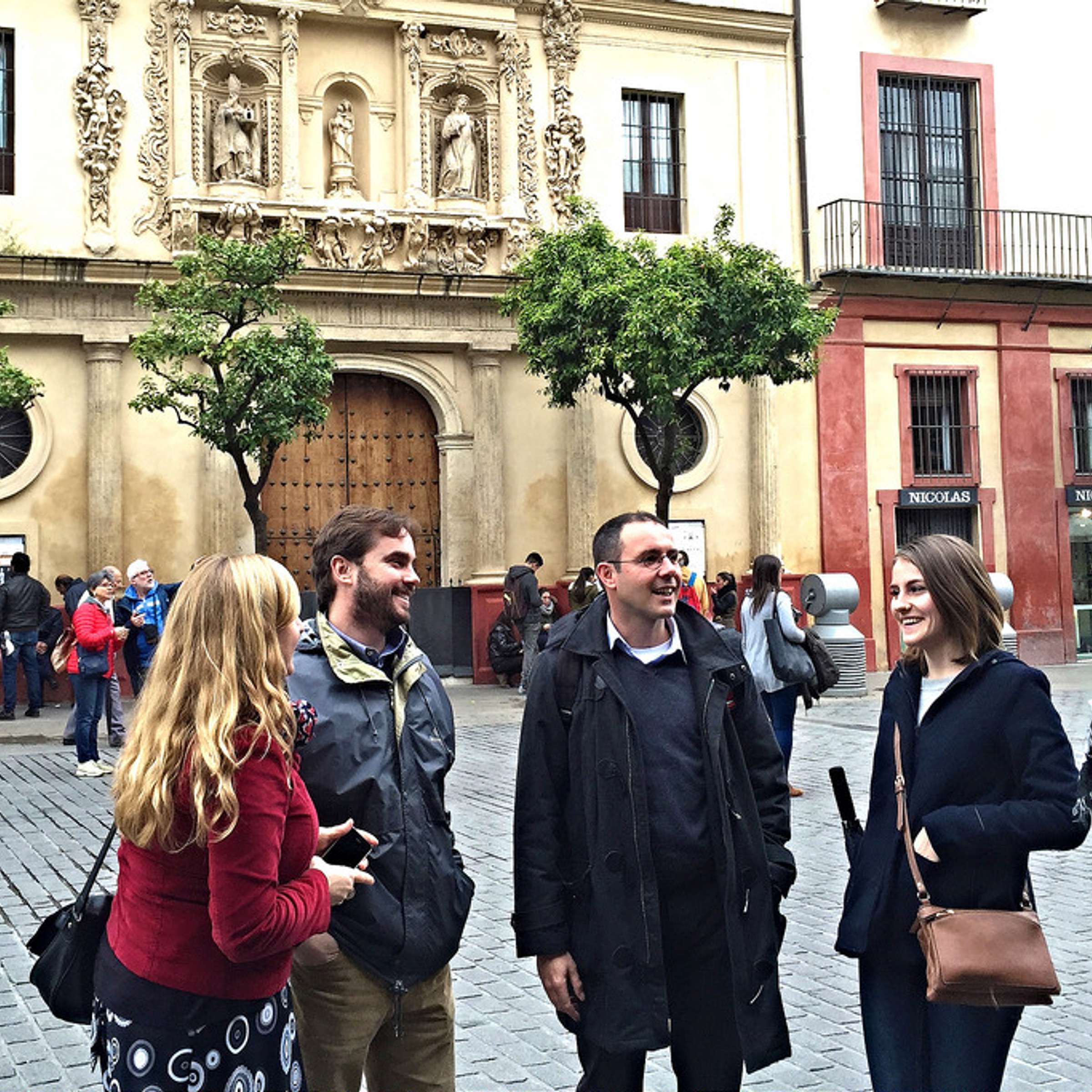 Ending at the Archivo de Indias, itself a UNESCO world heritage site, we'll consider the exterior of two of Seville's most emblematic structures—the Royal Alcázar and the Cathedral. Both of these impressive buildings represent Seville's pivotal turning point from Muslim territory to the Christian Reconquista. Please note that we do not tend to go inside these buildings on the tour, but we encourage you to visit independently afterwards. As our time together comes to a close, we will depart armed with a now solid understanding of the many layers of this magnificent city. As we take on our own independent exploration of these sites, as well as the rest of the city, we will feel prepared to make connections among Seville's various influences.