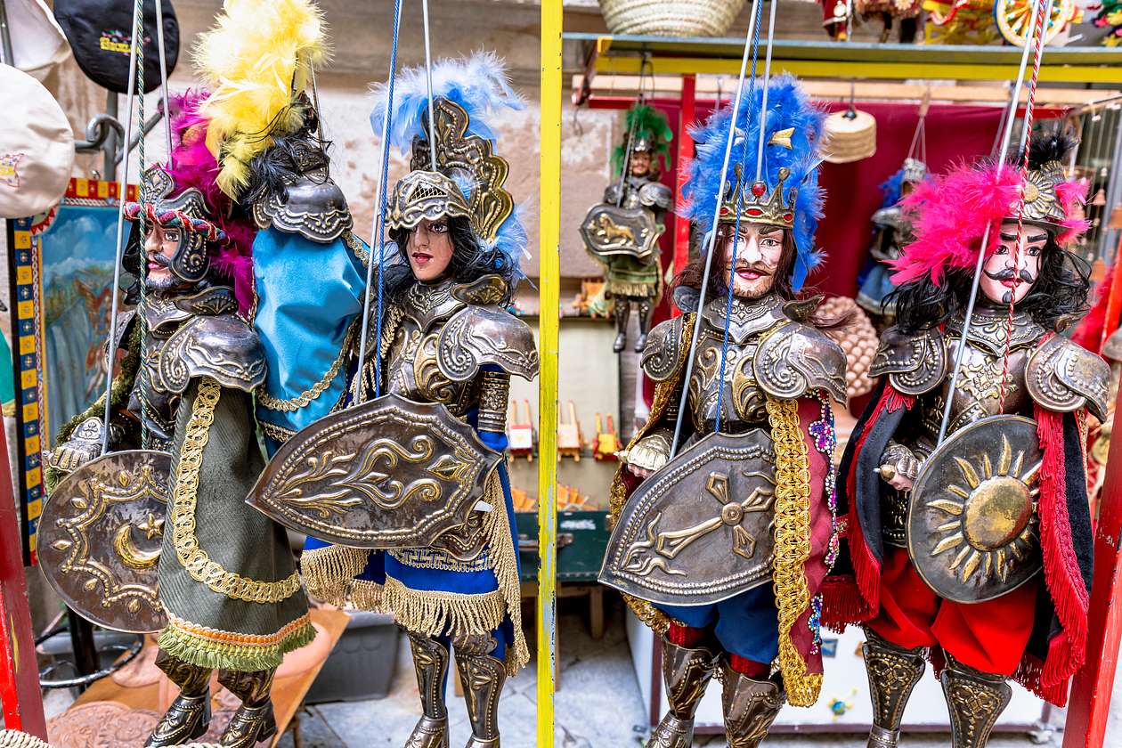 The next stop is a UNESCO-recognized tradition: the art of Sicilian puppeteers and Opera dei Pupi. Your guide will take you to an intimate workshop, where you’ll meet a master artisan, and you will see how these intricate puppets are created, from their fine metal armor to their animated movements. This craft is a centuries-old tradition transmitted from master to pupil. At the end of your visit, you will enjoy a brief but thrilling demonstration of a classic battle scene.