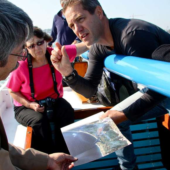Our tour of the Venice lagoon with Luca was a highlight of our trip. Luca explained clearly the many forces of waves, wind and water exerting pressure on Venice, and how the sea gates are meant to function. Our tour was exceptionally well designed to illustrate somewhat abstract (or underwater!) ideas, taking us from Arsenale to San Erasmo past an installed sea gate back to the piazza of San Marco. Luca is a personable presenter, and he threw in many small observations about Venice that I’d never heard anywhere else—such as why Venice can have a sulfurous smell. My only suggestion for something else was that I wish I had known in advance of Luca’s appearance on a TV show—it would have been helpful background.